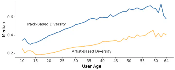 The majority of research in recommender systems, be it algorithmic improvements, context-awareness, explainability, or other areas, evaluates these systems on datasets that capture user interaction over a relatively limited time span. However, recommender systems can very well be used continuously for extended time. Similarly so, user behavior may evolve over that extended time. Although media studies and psychology offer a wealth of research on the evolution of user preferences and behavior as individuals age, there has been scant research in this regard within the realm of user modeling and recommender systems. In this study, we investigate the evolution of user preferences and behavior using the LFM-2b dataset, which, to our knowledge, is the only dataset that encompasses a sufficiently extensive time frame to permit real longitudinal studies and includes age information about its users. We identify specific usage and taste preferences directly related to the age of the user, i.e., while younger users tend to listen broadly to contemporary popular music, older users have more elaborate and personalized listening habits. The findings yield important insights that open new directions for research in recommender systems, providing guidance for future efforts.